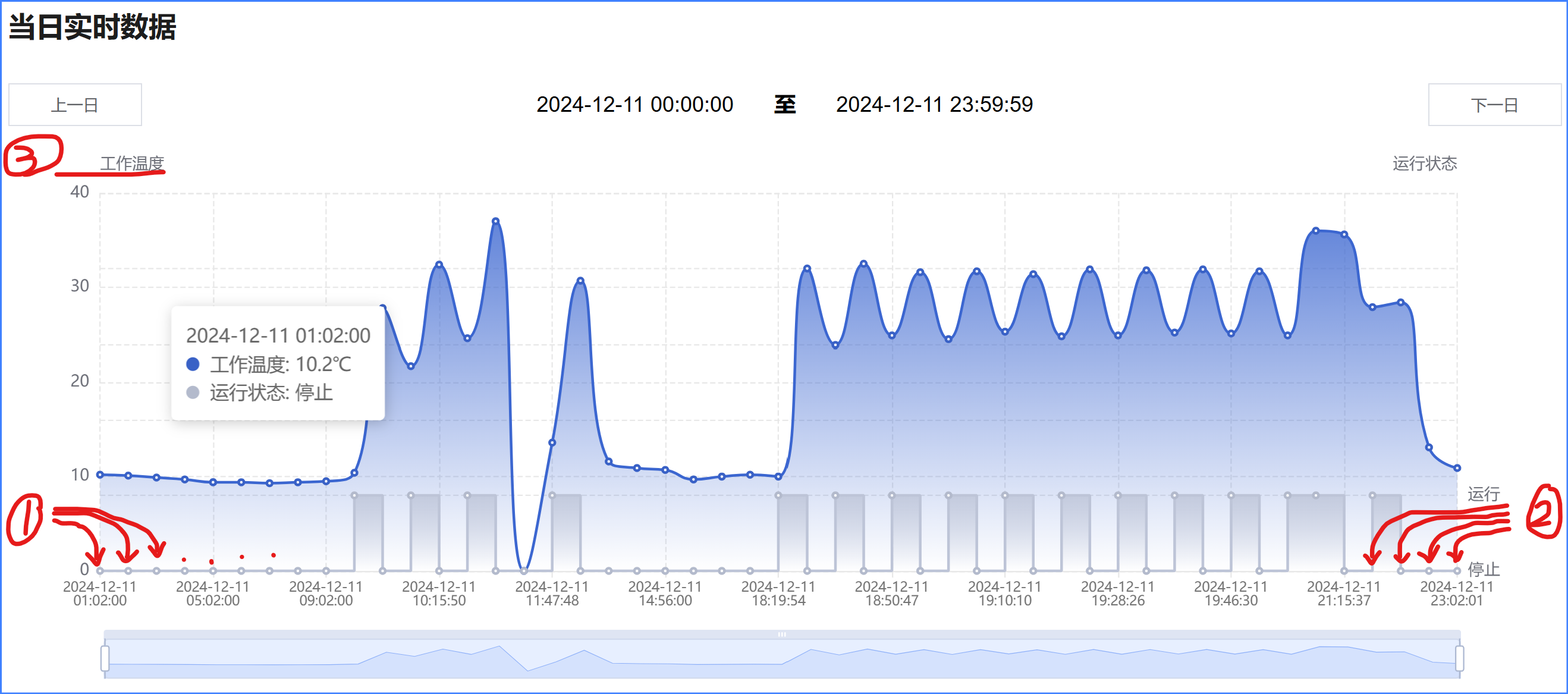 零点跨天:北京时间,每天的0点,上报一次压缩机的状态。减缓数据拥堵,00:00 报文生成后非立即发送,在00:03前上报。